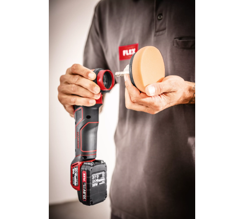Висока плавність ходу завдяки оптимізації вібрацій. Спеціальне амортизоване тарілчасте шліфувальне коло на «липучці» для полірування та шліфування. З протиударним кільцем для захисту поверхонь. Безщітковий двигун з високим ККД та тривалим терміном служби. Electronic Management System (EMS) захищає інструмент, продовжує термін служби та підвищує ефективність. Світлодіодний індикатор ємності акумулятора.